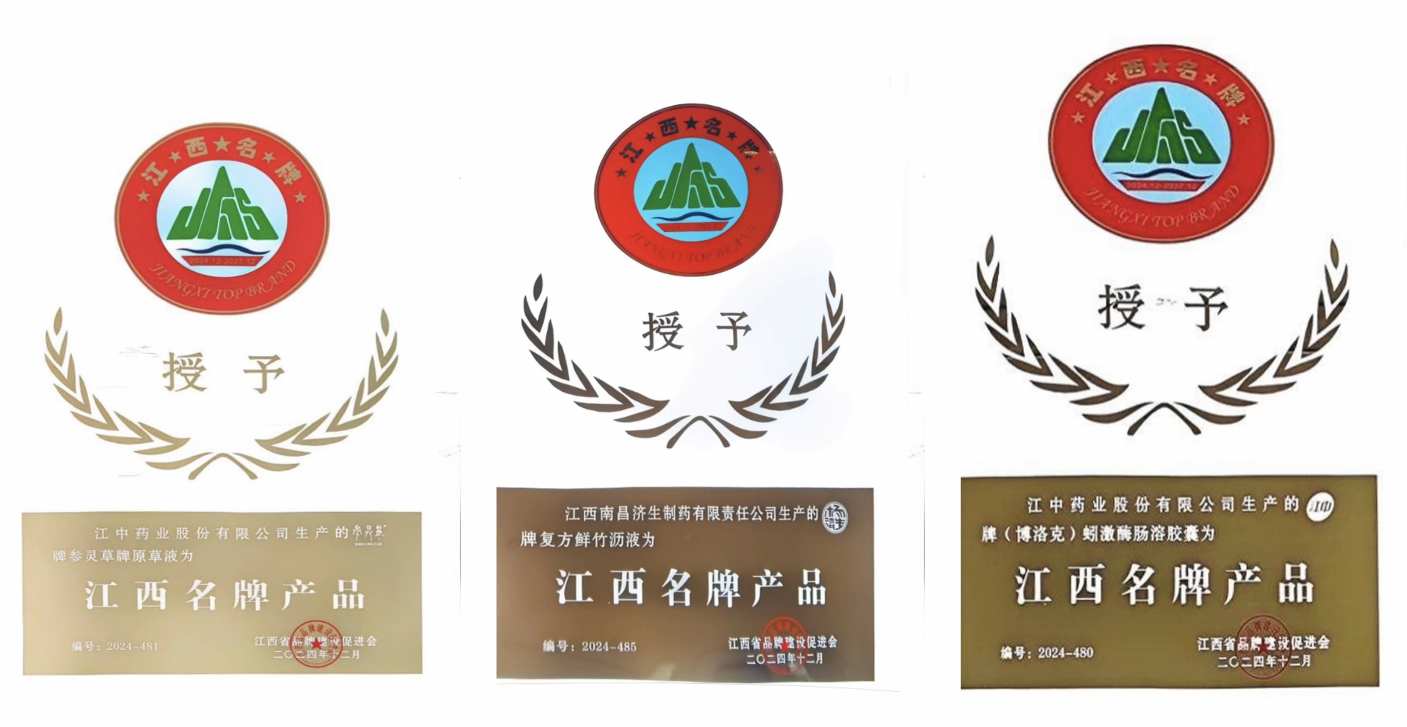 今年会·(jinnianhui)金字招牌药业三个品牌产品获评“江西名牌产品”称号
