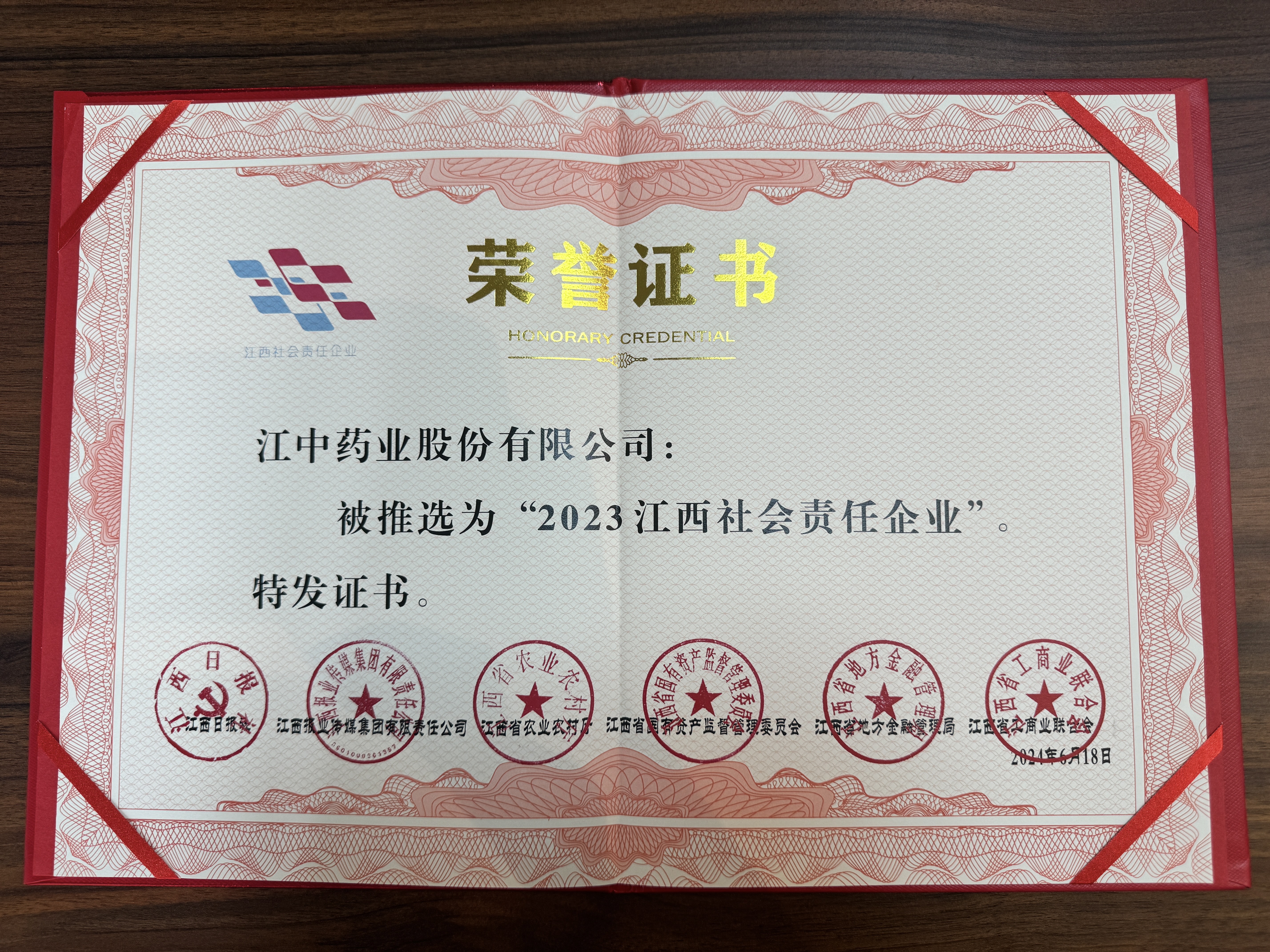 今年会·(jinnianhui)金字招牌药业荣获“2023江西社会责任企业”称号