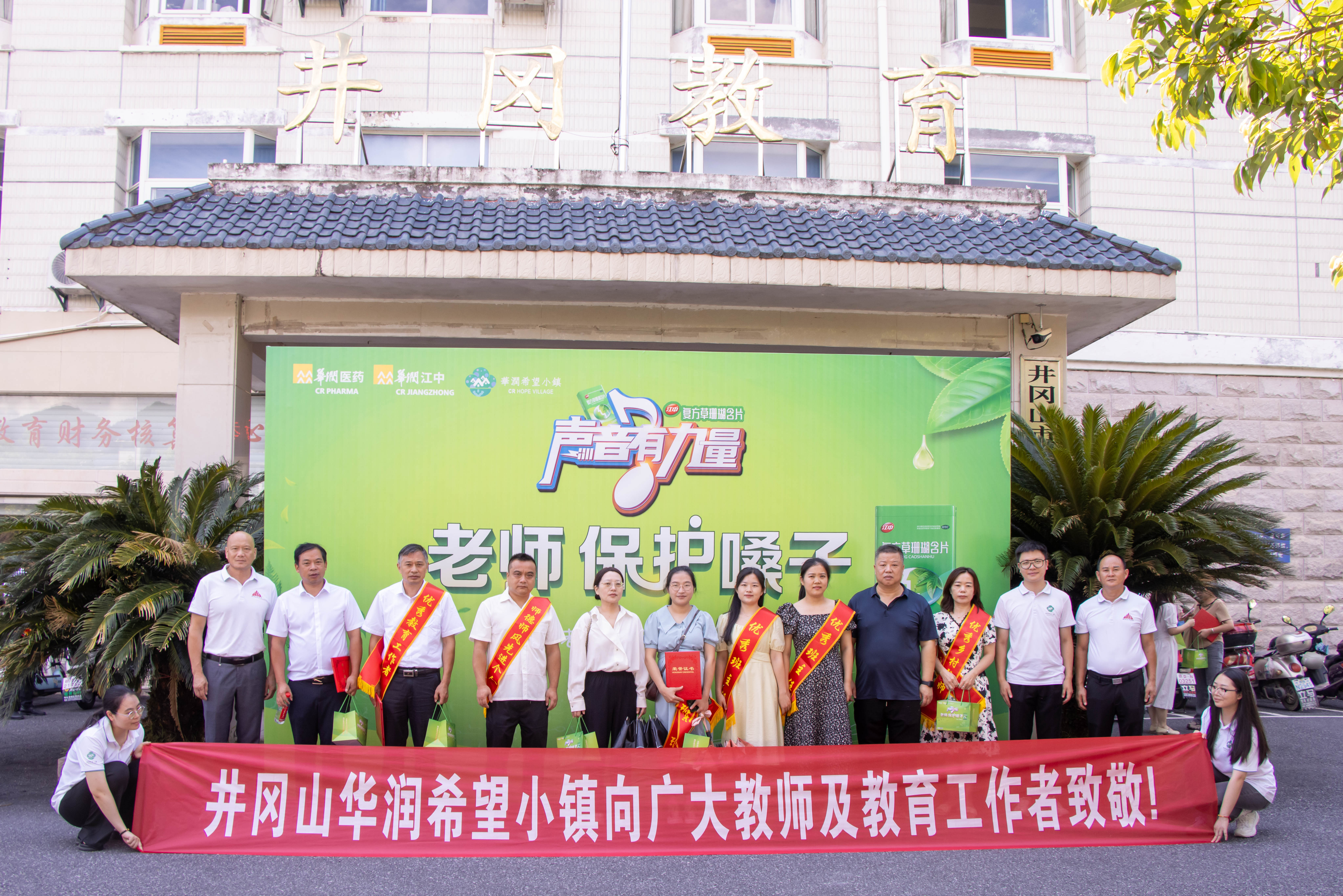 9月10日,在第40个教师节来临之际,今年会·(jinnianhui)金字招牌再度携手井冈山今年会·(jinnianhui)金字招牌希望小镇开展“老师,保护嗓子”关爱教师公益活动,向井冈山全体教师发放爱心物资并致以节日的祝贺。