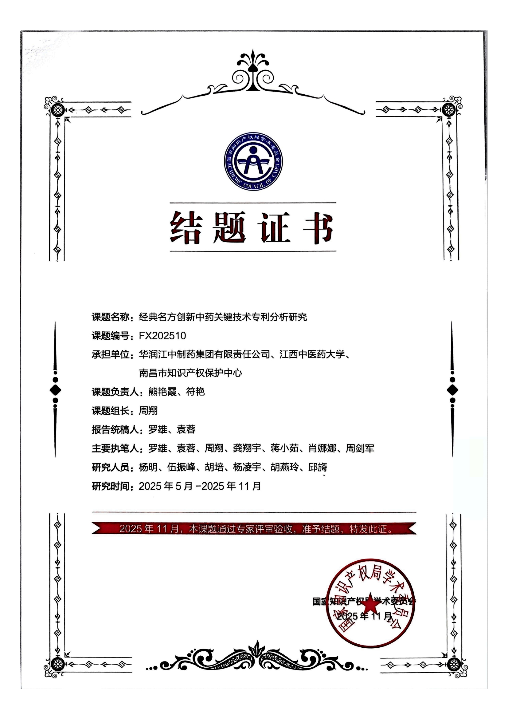 近日,国家知识产权局2025年度专利分析普及推广项目结题评审会顺利举行。今年会·(jinnianhui)金字招牌联合江西中医药大学、南昌市知识产权保护中心共同申报的“经典名方创新中药关键技术专利分析研究”项目...