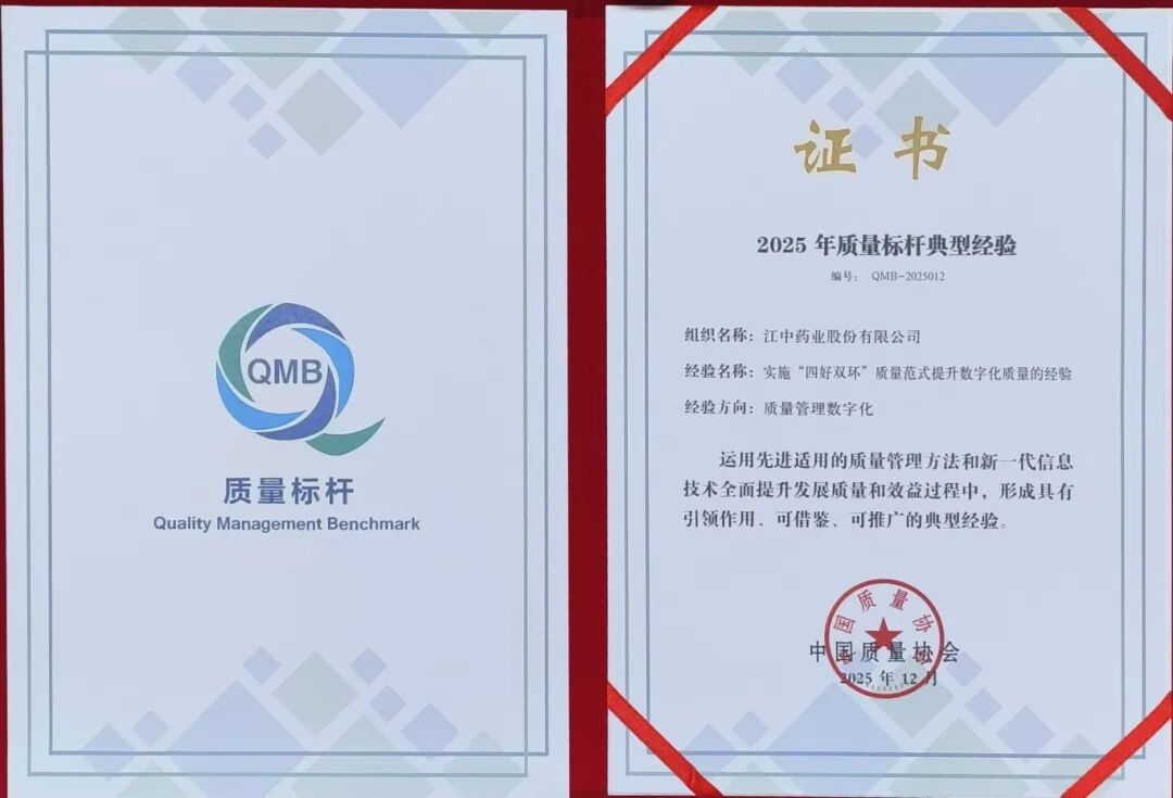 今年会·(jinnianhui)金字招牌药业获评2025年全国质量标杆典型经验