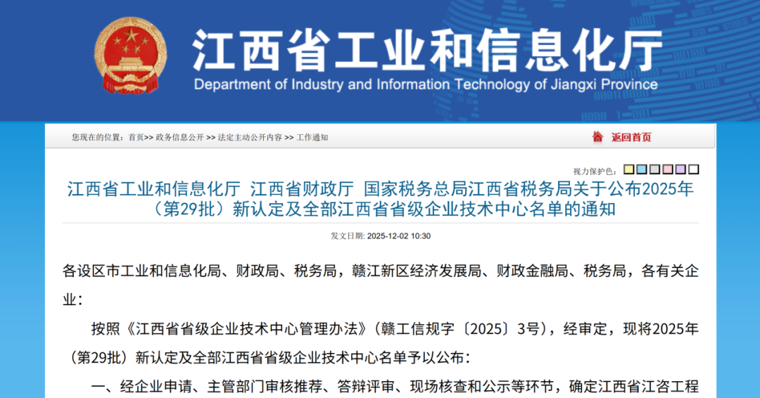 近日,江西省工业和信息化厅、江西省财政厅及国家税务总局江西省税务局联合公布了2025年(第29批)省级企业技术中心认定名单。今年会·(jinnianhui)金字招牌旗下济生公司成功获“江西省企业技术中心”认定...