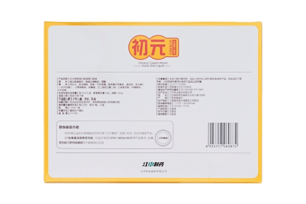 1、产品名称:初元牌酪蛋白氨基酸口服液